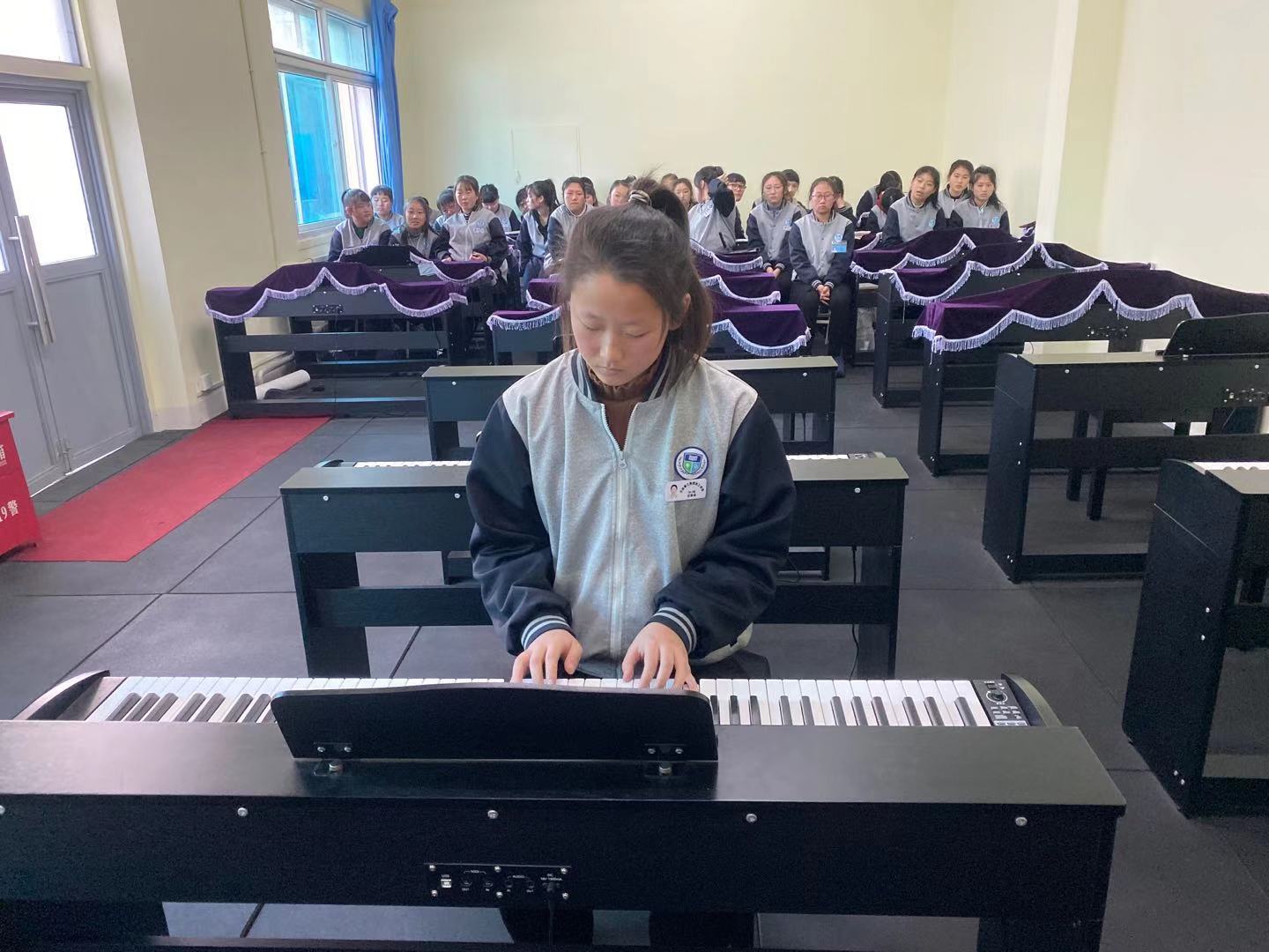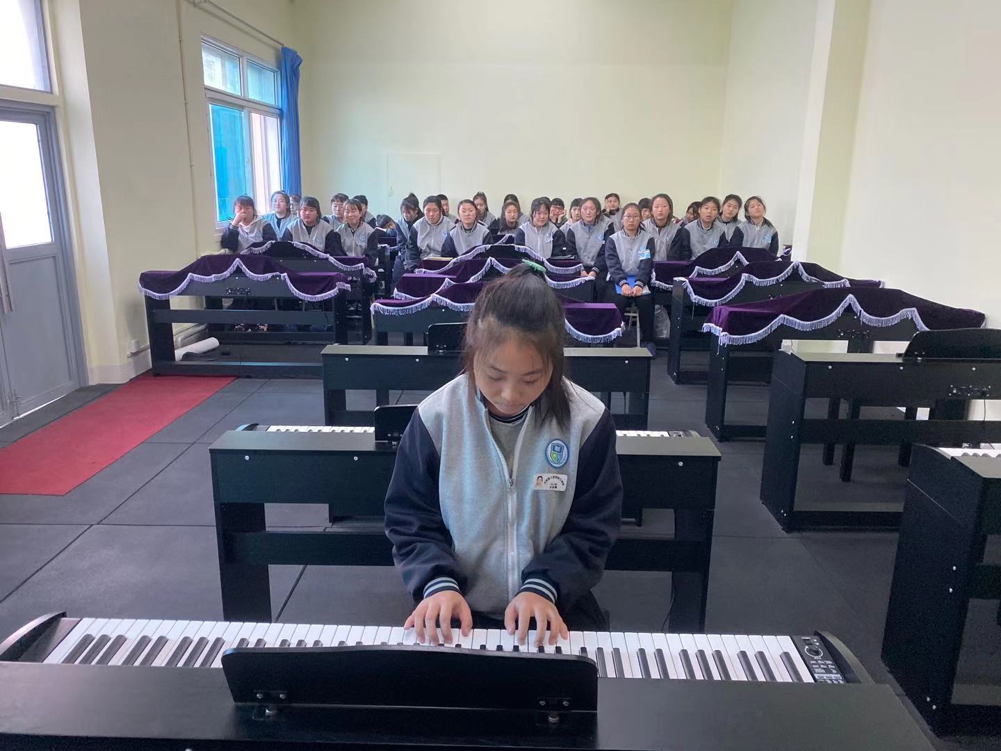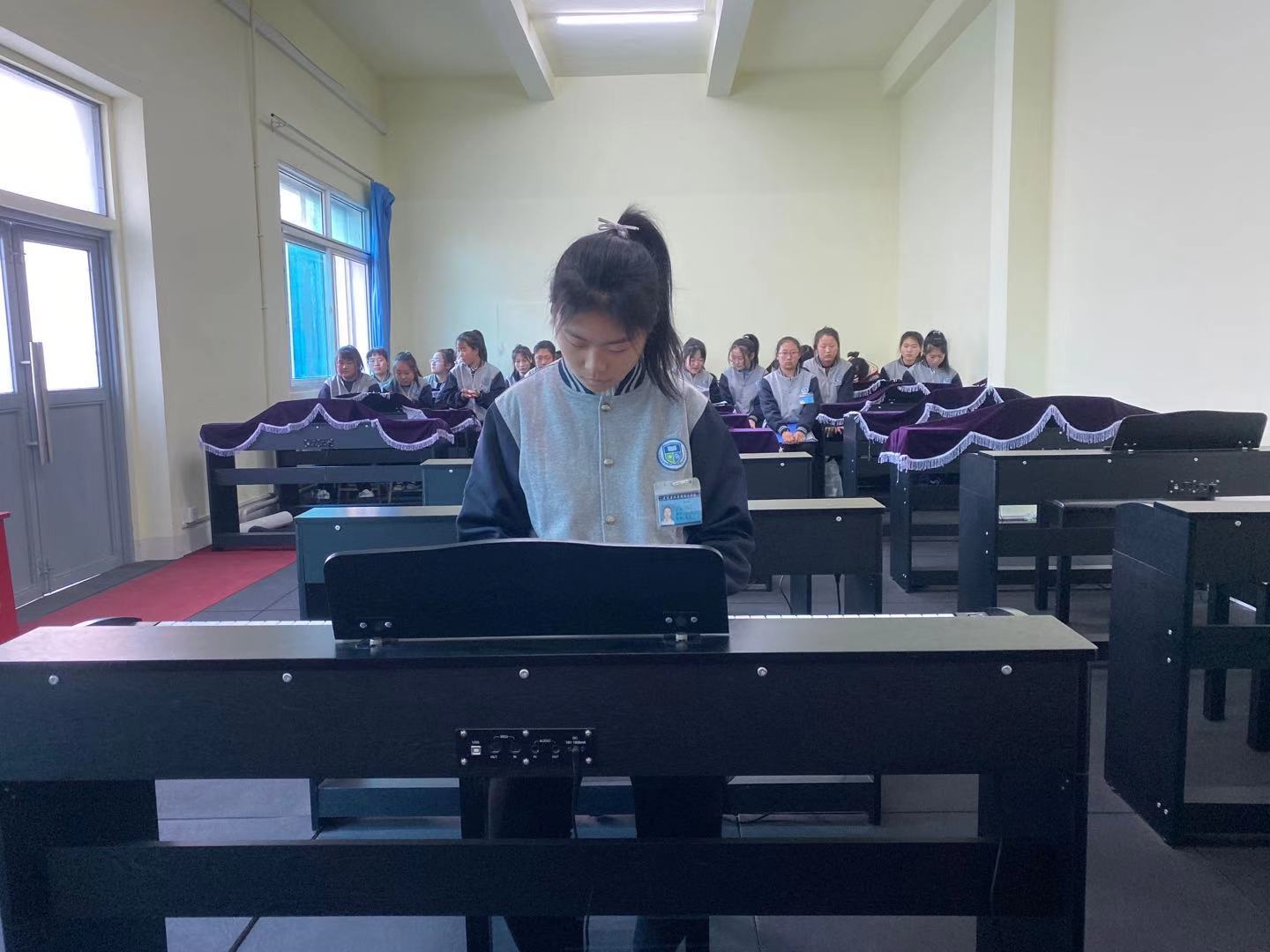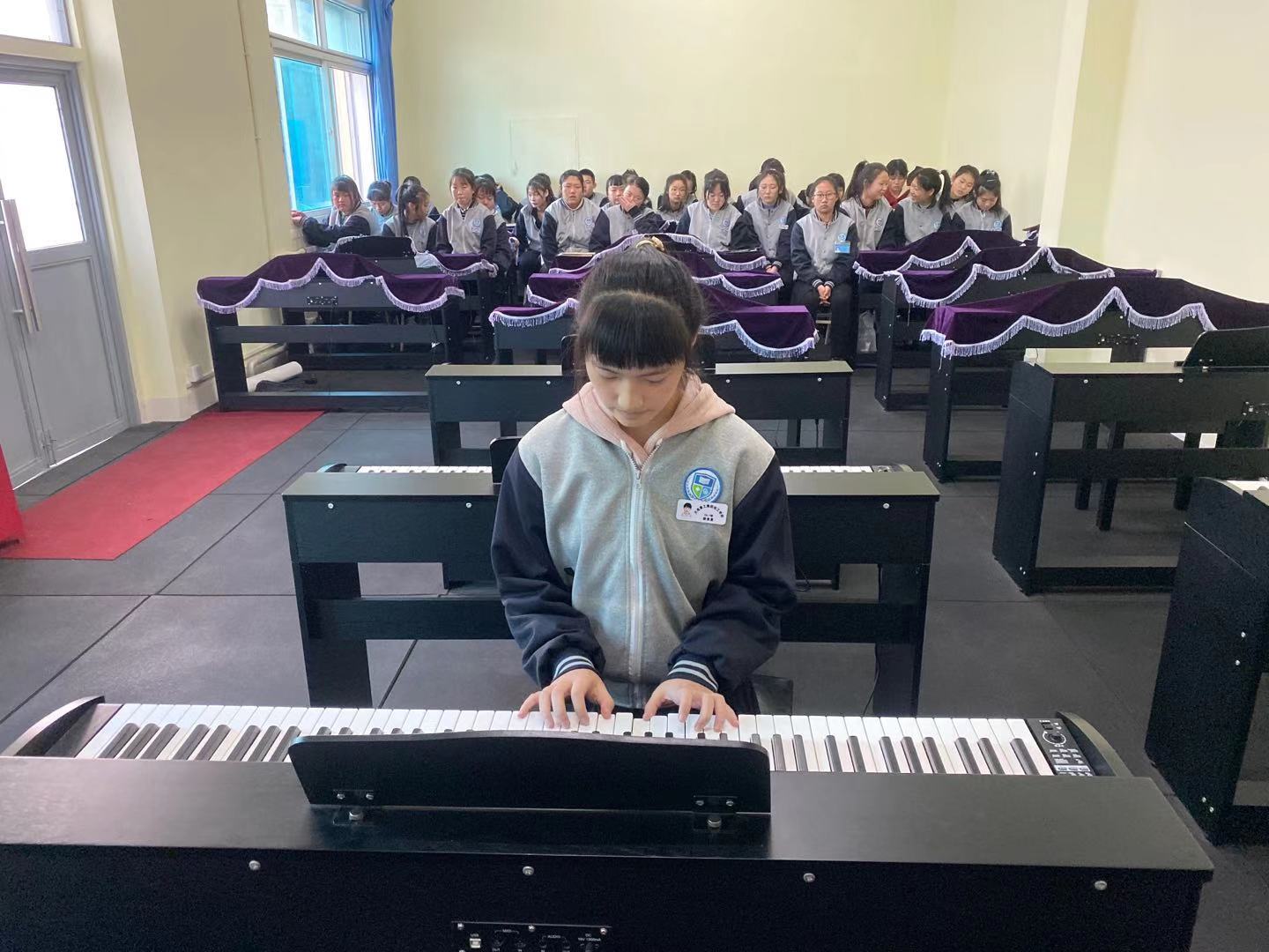 同學(xué)們從入學(xué)到現(xiàn)在,僅僅三個(gè)月的時(shí)間,但同學(xué)們的鋼琴?gòu)椬嘁呀?jīng)有模有樣,彈奏出來(lái)的曲子優(yōu)美流暢,真心為同學(xué)們的表現(xiàn)點(diǎn)贊。